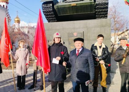 В честь Дня Комсомола в Чите прошёл торжественный митинг и возложение цветов к подножию памятника танковой колонне "Комсомолец Забайкалья".