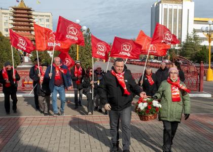 4 ноября активисты КРО КПРФ отметили 104-ю годовщину автономии Калмыкии. Коммунисты и их сторонники возложили цветы к памятникам В.И.Ленину и Б.Б. Городовикову. Собравшихся поздравили со знаменательной датой секретарь рескома партии Мигмир Бембеева и секретарь Элистинского местного отделения КПРФ Геннадий Кодлаев.