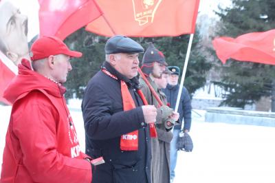 Член ЦК КПРФ, первый секретарь Омского обкома КПРФ, депутат Госдумы РФ Андрей Алехин выступил на праздничной акции у памятника В.И. Ленину на Ленинской горке в Омске.