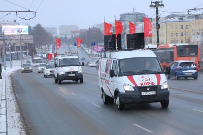 Чествование годовщины революции продолжилось традиционным автопробегом. Колонна машин с красными флагами под советскую музыку (на автозвук короновирусные ограничения не распространяются) проехала по всем районам города.