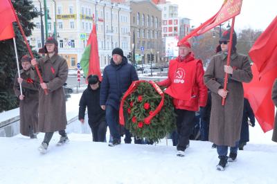 В день 107-й годовщины Великого Октября коммунисты областного центра возложили цветы и венок к Вечному огню в сквере Борцов Революции и памятнику В.И. Ленину на Ленинской горке. Несмотря на то, что, 7 Ноября – давно рабочий день, несмотря на продление коронавирусных ограничений, запрещающих все публичные мероприятия, кроме организуемых властью, праздник собрал немало коммунистов и их сторонников.