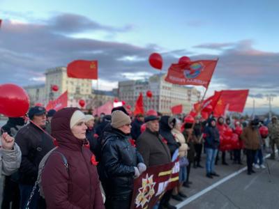 7 ноября коммунисты и сторонники КПРФ провели в Барнауле торжественный митинг, посвященные 107-й годовщине Великой Октябрьской социалистической революции.