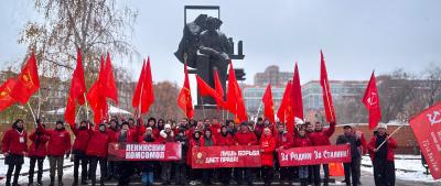 В завершение шествия, красная колонна проследовала в центр города, где совместно с представителями лево-патриотических сил коммунисты и комсомольцы возложили цветы к памятнику вождю Великой Октябрьской социалистической революции, основателю первого в мире социалистического государства В.И. Ленина.