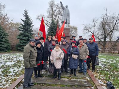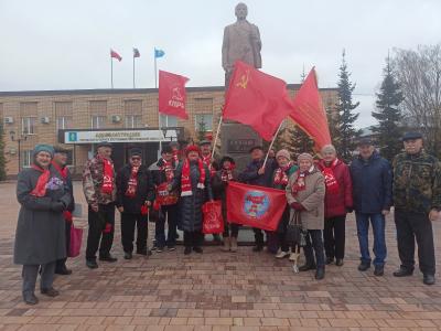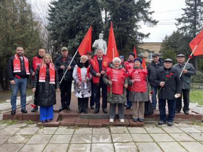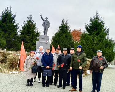 Коммунисты возложили цветы к подножью памятника В.И. Ленина, как дань глубокого уважения историческим переломным событиям, повлиявшим на весь мир.