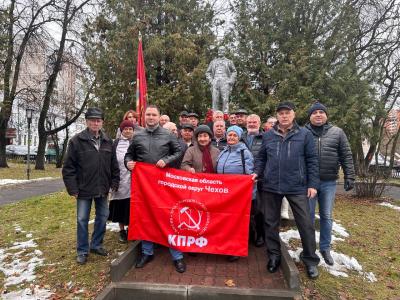 7 ноября, в День Октябрьской революции, коммунисты городского округа Чехов провели митинг и возложили цветы у памятника В.И. Ленина, в городе Чехов.