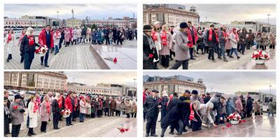7 ноября коммунисты, комсомольцы, ветераны партии, сторонники КПРФ собрались около памятника В.И. Ленину на центральной площади г. Тулы. Первый секретарь Тульского обкома КПРФ, член ЦКРК партии, депутат Тульской областной Думы, председатель комитета по местному самоуправлению облдумы, руководитель фракции КПРФ в региональном парламенте Алексей Лебедев поздравил собравшихся с очередной 107-й годовщиной Великой Октябрьской социалистической революции, от лица обкома партии поблагодарил коммунистов за верность социалистическим идеалам, за работу по сохранению и пропаганде советских традиций.