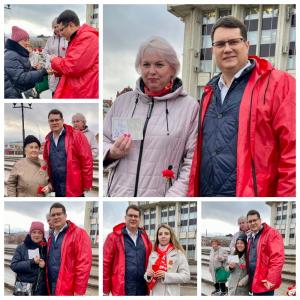 Затем лидер тульских коммунистов Алексей Лебедев вручил партбилеты трем новым членам партии, которые накануне праздника вступили в Центральное местное отделение КПРФ, а также памятные медали ЦК КПРФ «80 лет освобождения Крыма и Севастополя» и «Дети войны». Партийные награды были вручены активным участникам сбора гуманитарной помощи для Донбасса: секретарю Зареченского местного отделения партии А.А. Соболевой, а также ветерану партии из Привокзального местного отделения города Тулы Т.Д. Степановой. Затем участники торжественного мероприятия возложены цветы к памятнику В.И. Ленину. Впереди колонны: первый секретарь обкома партии Алексей Лебедев, депутат-коммунист, член ЦК КПРФ Татьяна Косарева, заместитель руководителя фракции КПРФ в облдуме Светлана Белоус, члены Бюро обкома партии Максим Дронов и Михаил Тесаков.