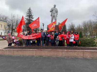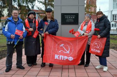 В День Великого Октября, по традиции, праздничное мероприятие провели у памятника вождю мирового пролетариата и основателю советского государства Владимиру Ильичу Ленину.