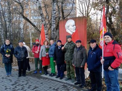 В 107-ю годовщину Великого Октября коммунисты Раменского возложили цветы к памятникам В.И. Ленина.