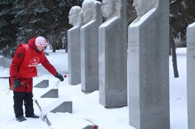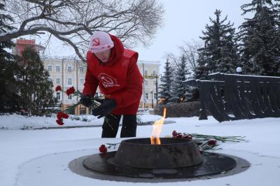 Сегодня в сквере Борцов Революции комсомольцы под руководством второго секретаря Омского обкома КПРФ возложили цветы к Вечному Огню и бюстам революционеров. К памятнику Борцам Революции возложили венок. Комсомольцы с красными знамёнами встали в почётный караул.