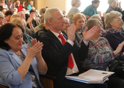 В актовом зале администрации Октябрьского округа Омск при поддержке депутата Государственной думы Андрея Алехина прошёл концерт группы «Мастер», посвященный дню матери «Поговори со мною, мама!».