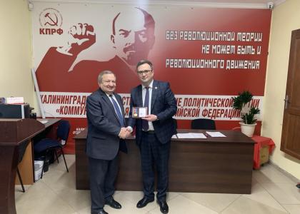 30 ноября состоялся III Пленум Комитета Калининградского областного отделения КПРФ, открывшийся торжественным вручением медали «30 лет Законодательному Собранию Калининградской области» В.П. Романенко, председателю Контрольно-ревизионной комиссии.