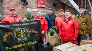 «Уважаемые товарищи, помощь курянам и курским товарищам, которые защищают Курскую область от оккупантов, оказывают не только коммунисты, но и предприниматели. Сегодня у нас представители одного из региональных отделений, а также руководитель общественной организации Ассоциации молодых предпринимателей России. Они предоставили помощь в виде зимней печи.»