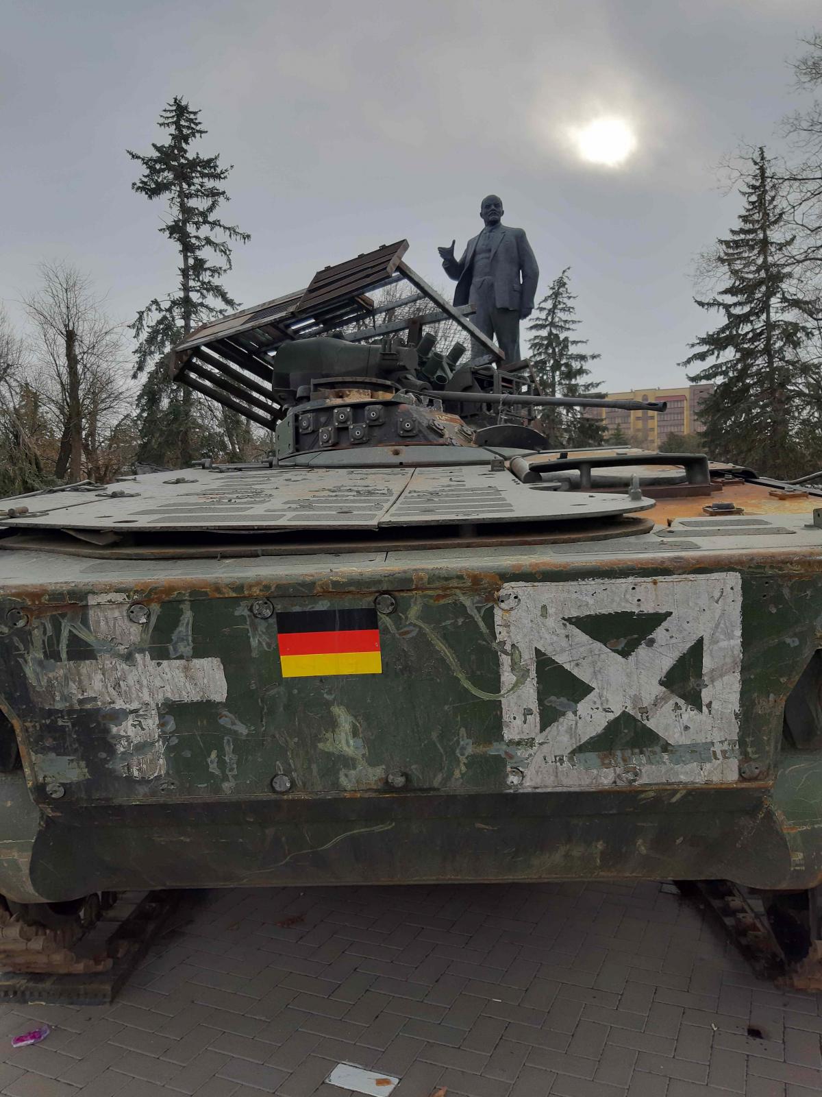 - Мы с вами 23 июля в День победы над фашистами в Курской битве говорили о Ленине. Обратите внимание: трофейная фашистская техника здесь, на площади его имени!