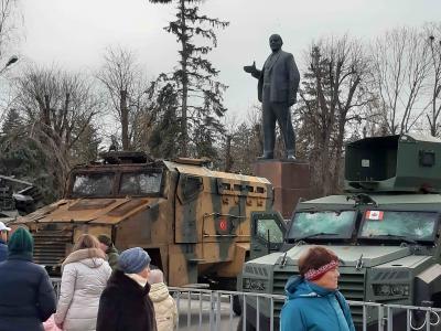 Тысячи жителей многонациональной Карачаево-Черкесии с огромным удовлетворением и презрением осматривают в Черкесске поверженные громадные бронированные машины НАТО, превращенные нашими воинами СВО в металлолом. Здесь же флаги бандеровских вояк, под которыми эти орудия смерти пытались нести смерть и разрушение. Тевтонские кресты, трезубцы, знаки США, Германии, Франции, Турции и других вечных ненавистников России обращены в мусор под ногами российских солдат.
