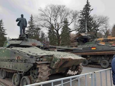 - Посмотрите на площадь имени Ленина в Черкесске! К подножью памятника Ленину вновь брошены фашистские символы и трофейная техника нацистов! Вновь, как в 1945 году к Мавзолею были брошены фашистские знамена! Там на натовских танках уродливые фашистские знаки! Мы, жители КЧР, мы, коммунисты, должны сделать все, чтобы приблизить новую Победу над фашизмом!
