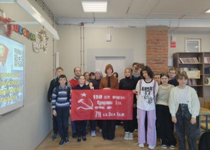 В ходе урока "Знамя нашей Победы" школьникам рассказали об истории Знамени, его водружении над фашистским Рейхстагом, об участниках тех событий и битве за Берлин.