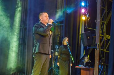 В творческой части концерта Владимир Курский порадовал собравшихся военно-патриотическими песнями из нового альбома "За наших". Первую песню "Сына глаза" зал слушал стоя, со слезами на глазах - настолько проникновенными были слова.