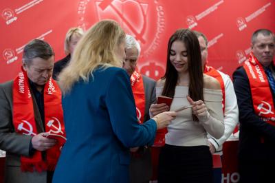 Перед началом мероприятий первый секретарь Пермского краевого Комитета КПРФ Ксения Айтакова совместно с секретарём ЦК КПРФ Марией Дробот вручили партийные и комсомольские билеты пополнившим наши ряды товарищам, а также почетные грамоты и благодарственные письма проявившим себя в отчётный период коммунистам.