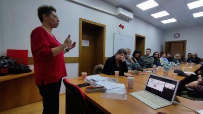 Лектор – член КПРФ Елена Волкова. Обсудили тему защиты гражданских прав от капиталистического произвола на жилищном фронте.