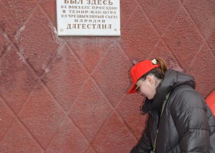 Сбор участников состоялся на центральной площади им. В.И. Ленина, далее красная колонна прошла к мемориальной плите на железнодорожном вокзале, посвященной приезду Иосифа Виссарионовича Сталина в Дагестан на чрезвычайный съезд народов Дагестана в ноябре 1920 года.