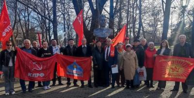 Активисты возложили цветы к бюсту-памятнику И.В. Сталина и к бюсту маршала К.К. Рокоссовского, чей день рождения 21 декабря также отмечается советскими патриотами.