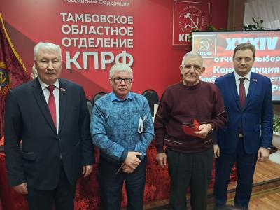 После процедуры обмена временных удостоверений на мандаты по доброй традиции наступило время торжественной части мероприятия. Г.П. Камнев вручил партийные билеты вступившим в КПРФ представителям Мордовского, Ленинского районных и Моршанского городского отделений КПРФ. Четверо товарищей были награждены орденом «За заслуги перед партией», пятеро - медалями ЦК КПРФ, ещё несколько коммунистов - ценными подарками. По итогам отчётного периода работа многих партийных отделений, а также надёжных союзников партии была отмечена грамотами областного Комитета.
