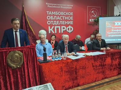 Под председательством первого секретаря Тамбовского обкома КПРФ А.И. Жидкова в субботу, 21 декабря, открылась XXXIV отчётно-выборная Конференция Тамбовского областного отделения КПРФ. В её работе приняли участие 73 делегата из 85 избранных от 29 районных и городских отделений партии, а также член Президиума и секретарь ЦК КПРФ, руководитель юридической службы партии, депутат Государственной Думы от Тамбовской области Г.П. Камнев. Кроме того, на конференции присутствовали ведущий специалист-эксперт управления Министерства юстиции по Тамбовской области К.А. Калинина и главный консультант избирательной комиссии Тамбовской области О.П. Бобряшова.