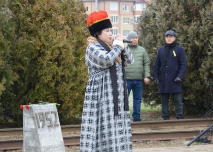 Песенную композицию о горьких днях безвинно сосланных в холодные края исполнила заслуженная артистка Калмыкии, солистка Государственного хора РК им. А.О.-Г. Цебекова Анна Очкаева. Поэт Владимир Санджиев прочитал стихи, посвященные скорбной дате. В память о жертвах репрессий была объявлена минута молчания. Затем участники мероприятия поднялись по спиралевидной тропе к монументу, где возложили венки и цветы, зажгли лампады памяти.