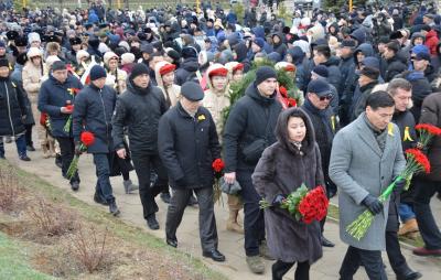 В траурном митинге в Элисте приняли участие руководители республики, представители министерств и ведомств, политических партий, общественных организаций, гражданские активисты. Цветы к подножию памятника «Исход и Возвращение» возложили также депутаты фракции КПРФ Элистинского городского Собрания Александр Владимиров, Джангар Боваев, Оксана Санджинова.