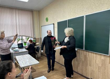 В завершении Денис Сергеевич вручил благодарность Рязанской областной Думы Екатерине Александровне Нехаевой связи с 55-летием, за добросовестный труд и высокие показатели в работе. Пожелал учителям больше уверенности и веры в завтрашнем дне, новых возможностей в наступившем году, достижений и побед, пожелал здоровья, мира, счастья, благополучия и успехов.