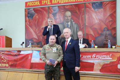 По традиции, перед началом работы пленума были вручены партийные билеты товарищам, недавно принятым в ряды КПРФ. Отрадно, что практически каждый месяц в одном или нескольких местных отделениях принимают в партию участников СВО, которые находятся в отпуске, демобилизованы по ранению или закончили службу в добровольческих частях.