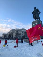 Ввиду того, что исполнительная власть не выполняет свои обязанности по уборке территорий возле объектов культурного назначения федерального уровня, мы были вынуждены сегодня в Оренбурге самостоятельно почистить постамент, и возложили цветы в честь годовщины смерти вождя мирового пролетариата.
