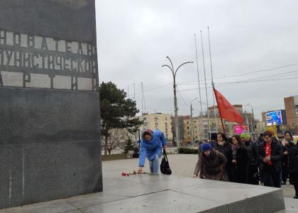 Ростовские коммунисты возложили цветы к памятникам В.И. Ленину на улице Большая Садовая, на одноименной площади, у входа на Кожевенный завод.