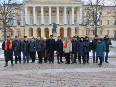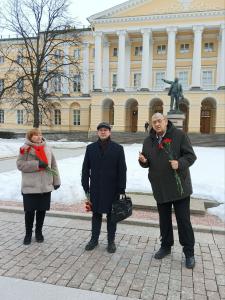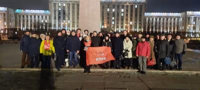 Активисты КПРФ из Пушкинского района возложили цветы к постаменту на Конюшенной улице, где находился взорванный вандалами памятник Ленину. Также члены партии возложили цветы у памятников в Детскосельском и на Колпинском шоссе возле памятника защитникам Ленинграда. К собравшимся обратился первый секретарь Пушкинского районного комитета КПРФ Валерий Дулеба.