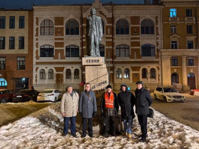 Коммунисты и комсомольцы Петроградского района возложили цветы к памятникам В.И. Ленину на Каменноостровском проспекте и на улице Ленина. Перед партийцами выступили первый секретарь Петроградского райкома Роман Луговской, председатель КРК районного отделения Николай Леонтьев и комсомолец Леонид Коковин, которые отметили важность коммунистических идей и необходимость социалистического курса для России.