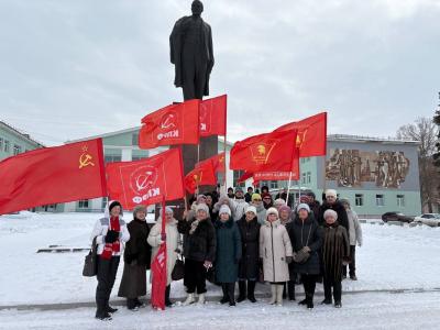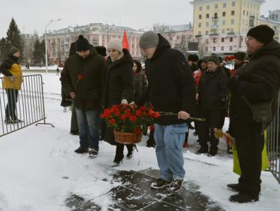 Предварительно очистив от снега главный городской монумент вождю мирового пролетариата, коммунисты и сторонники КПРФ возложили цветы.