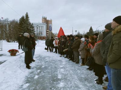 Рубцовские коммунисты провели пикет на площади им. В.И. Ленина. Первый секретарь горкома Андрей Чернобай рассказал о значении личности Владимира Ильича в мировой истории:
