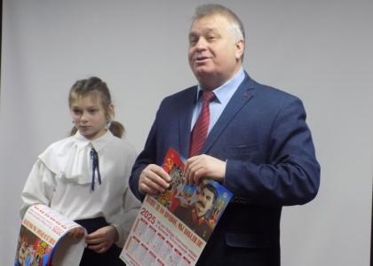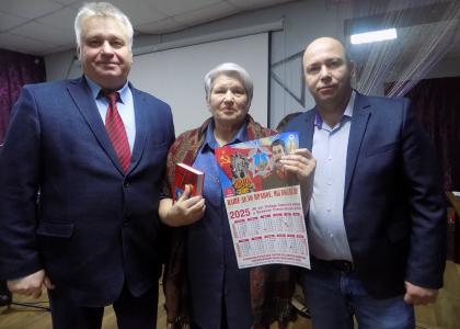 Андрей Рогатнев вручил волонтерам памятные медали ЦК КПРФ и календари на 2025 год с изображением Сталина.