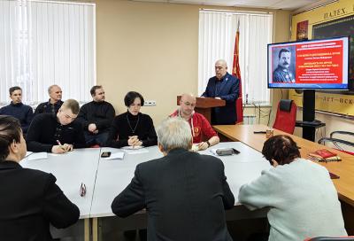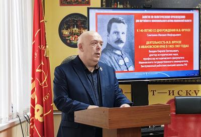 Занятие состояло из двух лекций. С первой из них, посвящённой биографии М.В. Фрунзе в целом, выступил член Ивановского обкома КПРФ М.М. Сметанин.