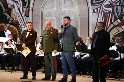 Перед зрителями концерта выступил В.А. Царихин. Он подчеркнул тот факт, что Александр Невский не проиграл ни одного сражения и отстоял независимость России от Запада. Недаром подвиги Александра Невского вдохновляли целые поколения, а мудрость и решительность великого русского князя остаются примером для подражания и в настоящее время.