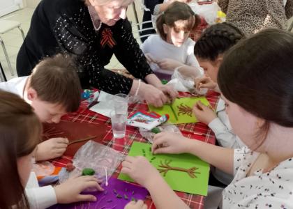 Любовь Харитоновна представила свои работы из соленого теста и провела мастер-класс по лепке, дети делали дерево-жизни (яблоньку). Также она выступила с творческими номерами, исполнила песни «На кургане» и «Солдатский вальс».