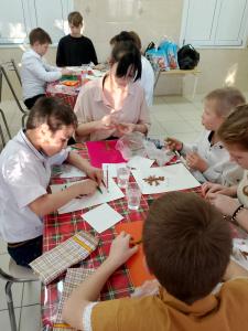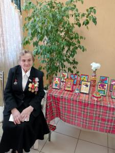 Любовь Харитоновна представила свои работы из соленого теста и провела мастер-класс по лепке, дети делали дерево-жизни (яблоньку). Также она выступила с творческими номерами, исполнила песни «На кургане» и «Солдатский вальс».