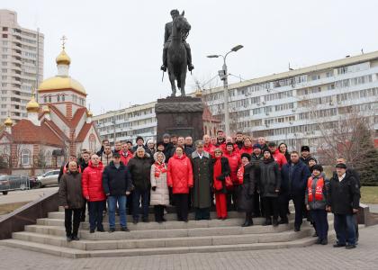 Затем партийцы отправились к монументу маршалу Советского Союза Константину Рокоссовскому. Его роль в исходе Сталинградского сражения сложно переоценить. Именно под его руководством была проведена операция «Кольцо», которая завершилась разгромом армии Паулюса. Коммунисты почтили память военачальника и защитников Сталинграда.