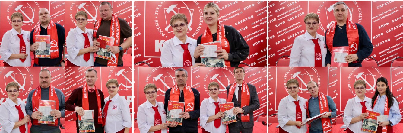Конференция началась с приятных моментов: участникам был продемонстрирован красочный видеоотчёт о работе фракции КПРФ в Саратовской областной думе, а затем первый секретарь Саратовского обкома КПРФ, депутат Государственной Думы О. Н. Алимова вручила партбилеты новобранцам Компартии, и поздравила товарищей по партии с юбилеями и днями рождений.