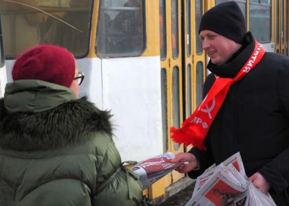 Свердловские коммунисты во главе с первым секретарем обкома Александром Ивачёвым 12 февраля вышли на улицы Екатеринбурга, чтобы начать сбор подписей в поддержку инициатив, вынесенных на "Народный референдум КПРФ".