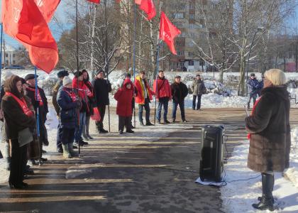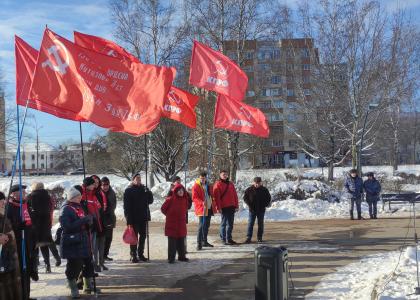 Митинг, посвящённый 107-ой годовщине создания Советской (Красной) Армии и Военно-морского флота, прошёл сегодня в центре Великого Новгорода. Организатором выступило Новгородское областное отделение КПРФ. Акция собрала десятки активистов патриотических движений областного центра.