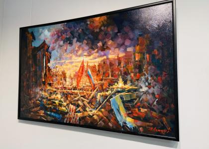 Участникам экспозиции было представлено свыше 25 масляных картин. Из них около 15 работ посвящены военной тематике, а в других картинах художник мастерски передал красоту русской природы, очарование полевых цветов и тихую прелесть городских улочек. Он использовал яркую палитру и необычные композиционные решения.