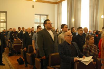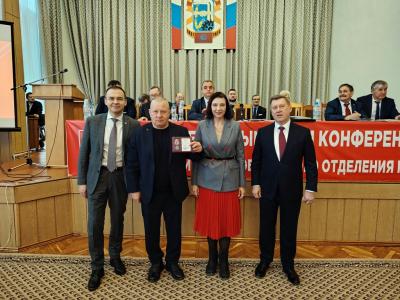После утверждения состава президиума, состава секретариата, счетной, мандатной и редакционной комиссий прошла церемония вручения партийных билетов новым членам партии, награждение памятными медалями «80 лет Победы в Великой Отечественной войне». Коммунисту Петру Рыбакову вручили медаль «Волонтеры России» за помощь бойцам специальной военной операции.