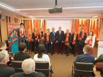 По традиции, перед началом Конференции, прошло торжественное вручение партийных билетов вновь вступающим в организацию товарищам. 10 человек получили партбилеты из рук секретаря ЦК КПРФ, первого секретаря ЛКСМ РФ, депутата Госдумы Владимира Исакова.